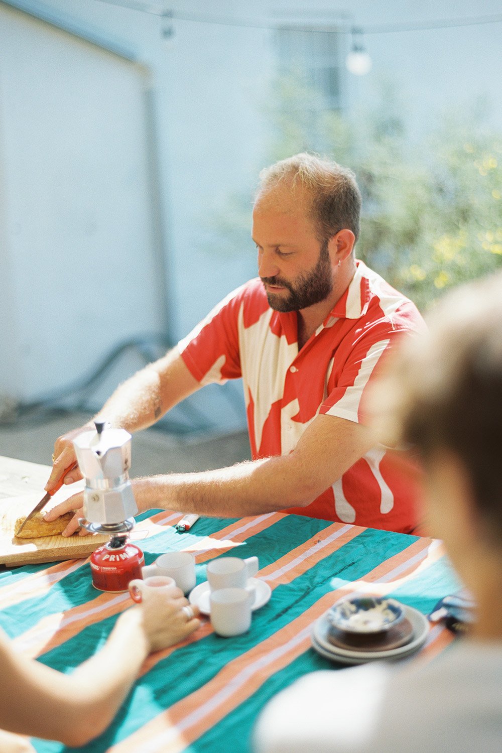I do! My alarm clock is the puppy—Ivo, a 6-month rescue mutt. We take a stroll up the hillside behind my house; I love L.A. in the morning before the heat creeps in. The hillside is covered in cacti and pepper trees so it really wakes up the senses. Sometimes I'll squeeze a bit of gardening in - I've been taking cacti cuttings from empty lots and planting a little patch at the back of the garden. My garden is long, so I'll take a camping burner and my Moka Pot with me so that I have fresh coffee without having to schlepp down to the kitchen. I love making the coffee with a view.