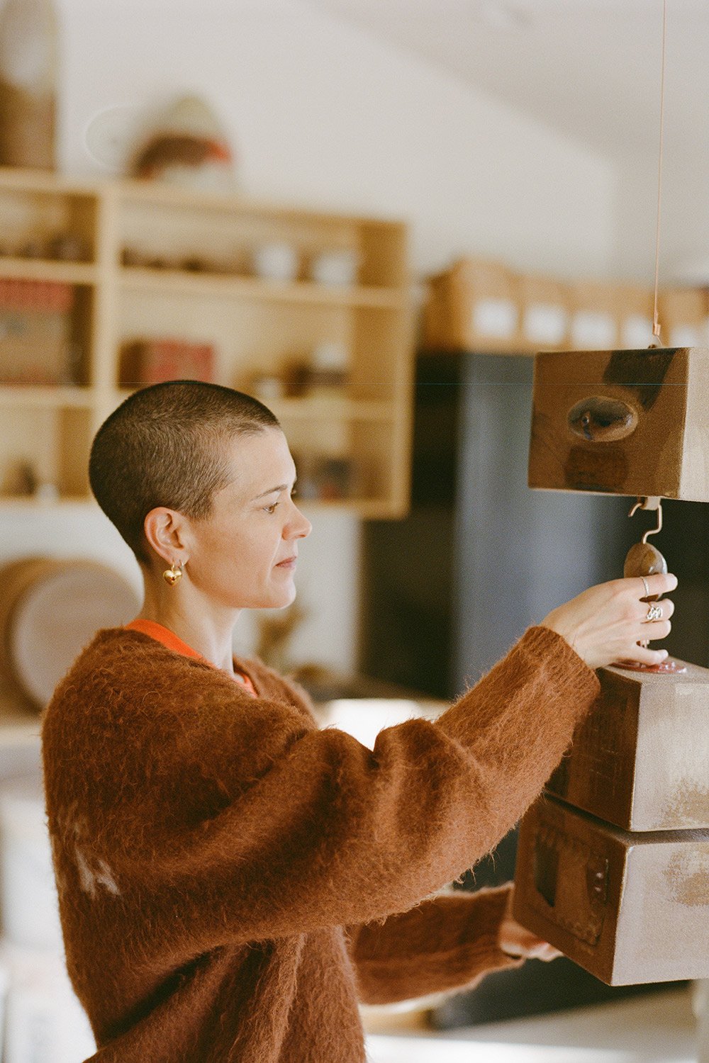 For Mariah Nielson, the familiar is never static. Mornings begin inside the hand-built Inverness, CA home her father, sculptor JB Blunk, shaped from salvaged redwood in the 1950s. It’s where Mariah now lives, and is raising her own son amid the textures, tools, and stories of her childhood—alongside traded works from friends, artist-made artifacts, and her own growing contributions.