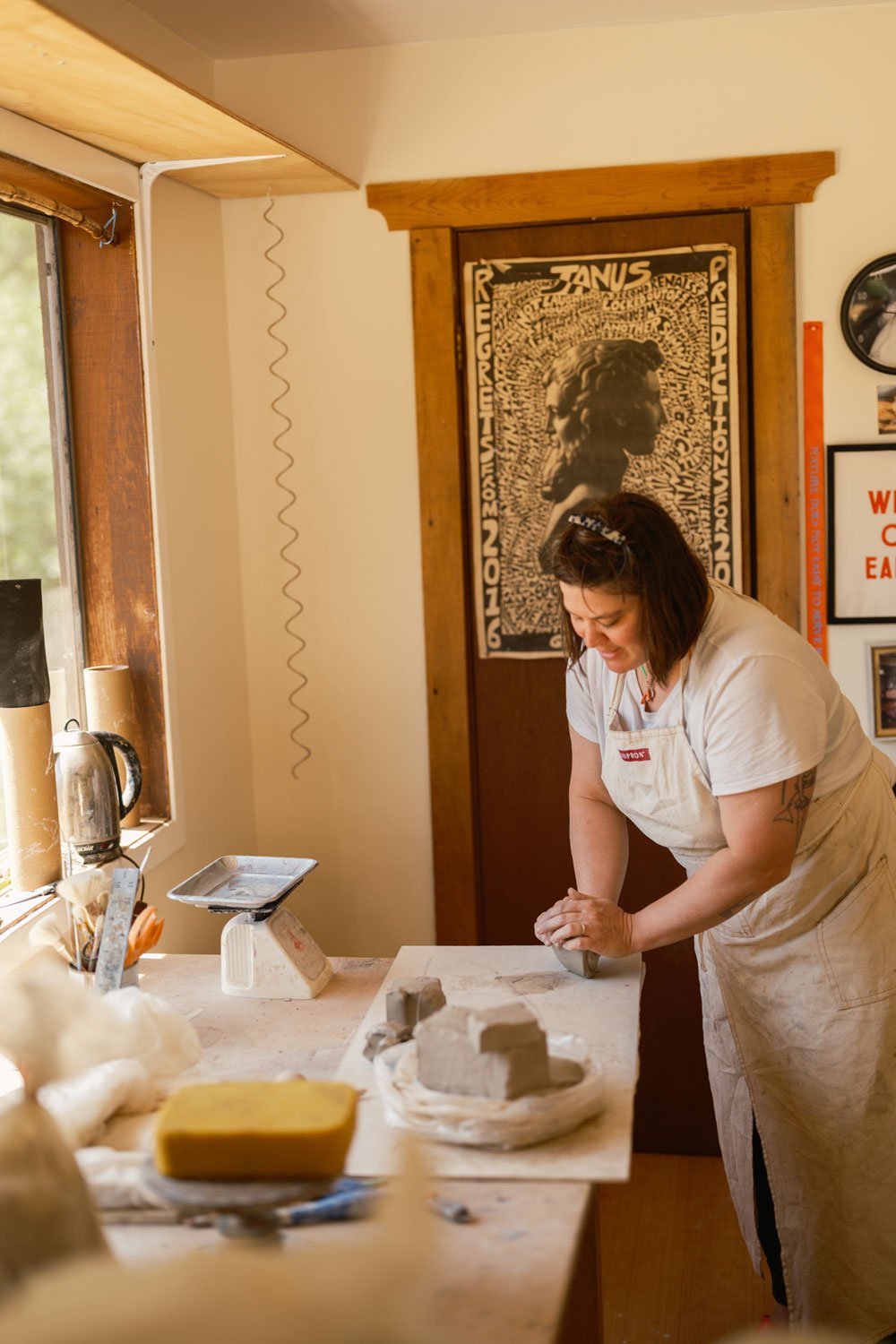 For Mariah Nielson, the familiar is never static. Mornings begin inside the hand-built Inverness, CA home her father, sculptor JB Blunk, shaped from salvaged redwood in the 1950s. It’s where Mariah now lives, and is raising her own son amid the textures, tools, and stories of her childhood—alongside traded works from friends, artist-made artifacts, and her own growing contributions.